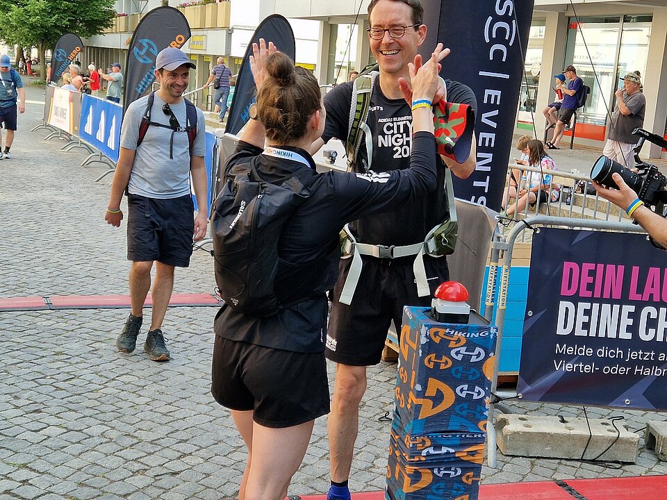 Hands up! Es ist geschafft. Nach 44 Kilometern glücklich und geschafft im Ziel. © SCC EVENTS